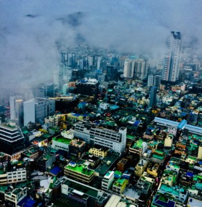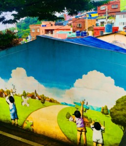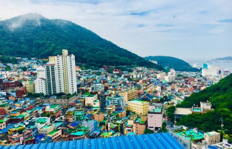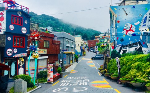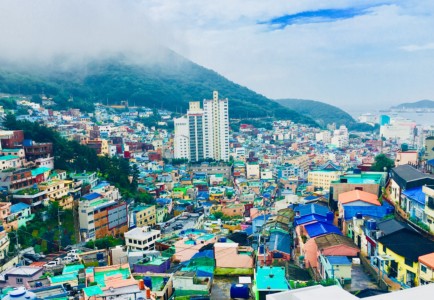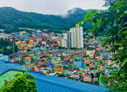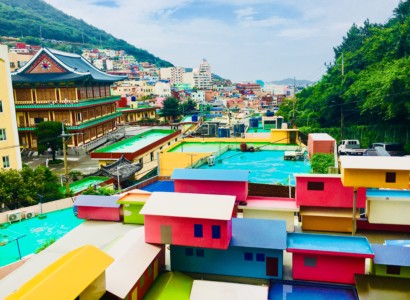 朝鮮戦争の難民と、太極道信者が形成したバラック小屋が始まりで、山の斜面にカラフルな古い家屋がびっしり建っています。