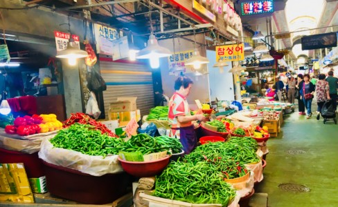 ジャガルチ市場は、韓国一の水揚げ量を誇る水産市場になります。早朝には仲買人が、そして日中には一般客で賑わっています。